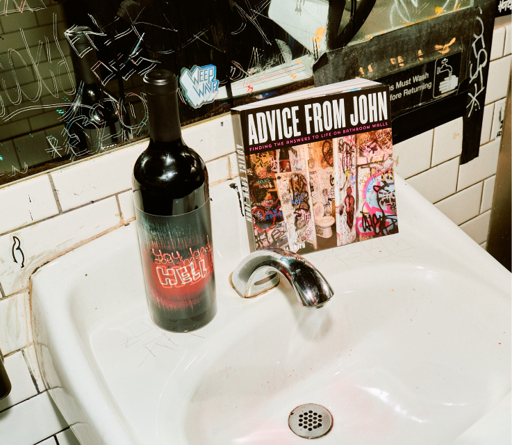 Like many things at Orin Swift, what started as a fascination quickly turned into an obsession. Samantha Smith, Dave Phinney’s longtime executive assistant (read: chauffeur, gopher, right-hand ma’am, therapist, etc.), managed amidst her daytime job to multitask away at a book, Advice From John—an anthology of the brilliant, idiotic, and sometimes deep thoughts found at the bottom of a cocktail and then subsequently scribbled and scrawled onto the walls of dive bar bathrooms.